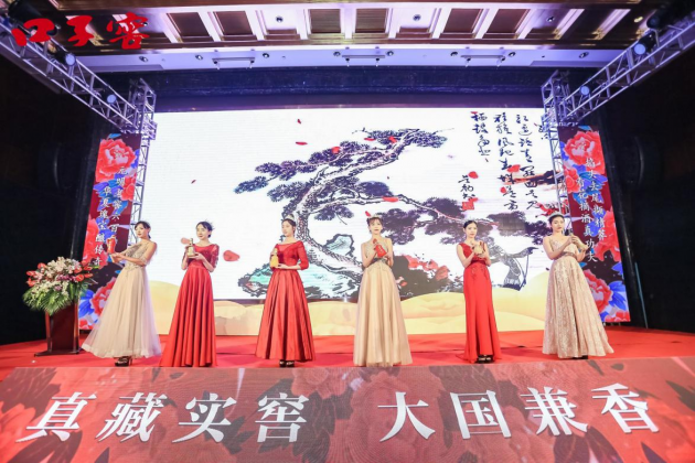 接下来,6位模特携口子窖产品走秀,分别展示了10年、20年、30年等6款美酒,打开瓶盖,香气四溢、溢满全场,这场秀,让人留恋的不仅仅是酒高贵的包装,还有醇厚的独属于口子窖的酒香。