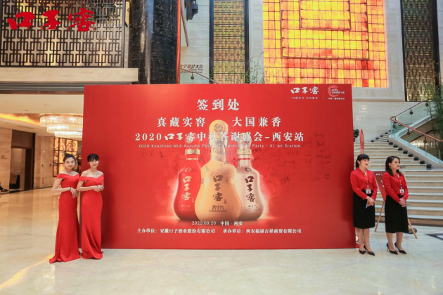 2020年9月20日,在中秋佳节即将到来之际,怀着对贵宾商户、客户的无限感恩之情,口子窖特地于西安曲江国际饭店举办了一场“2020口子窖中秋客户答谢盛会”,本次盛会由安徽口子酒业集团主办,西安福禄吉祥商贸有限公司承办。